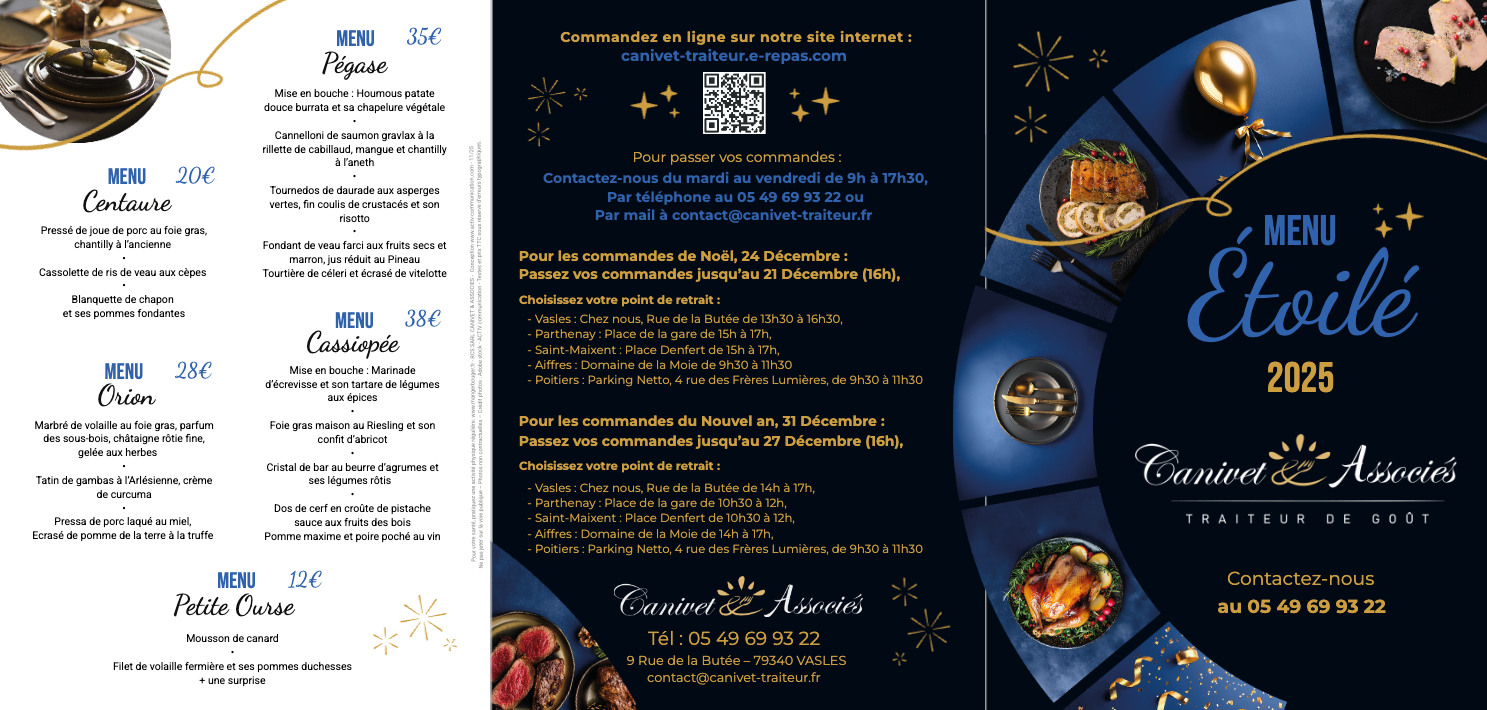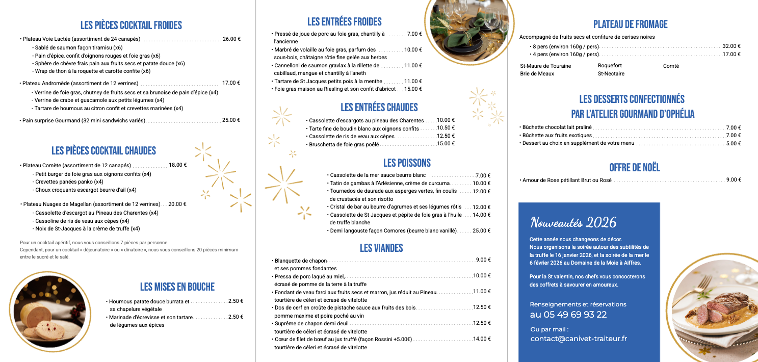 Menu modifiable et entièrement personnalisable en fonction de vos envies.